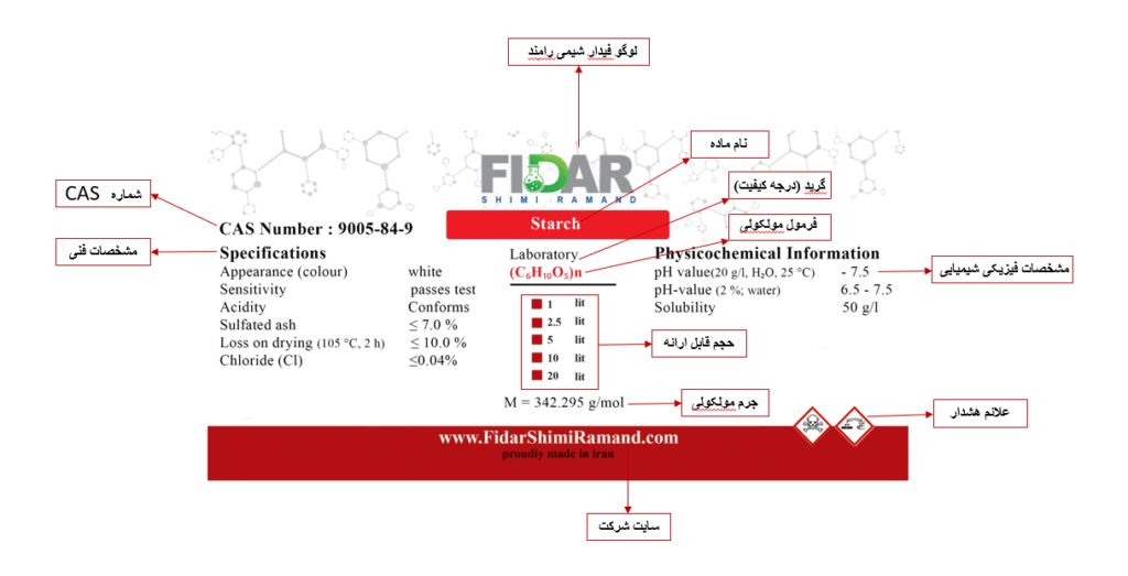 مشخصات لیبل مشخصات لیبل های شرکت فیدار شیمی رامند به شکل زیر است و براساس منطق ذیل در تمام محصولات حک شده .